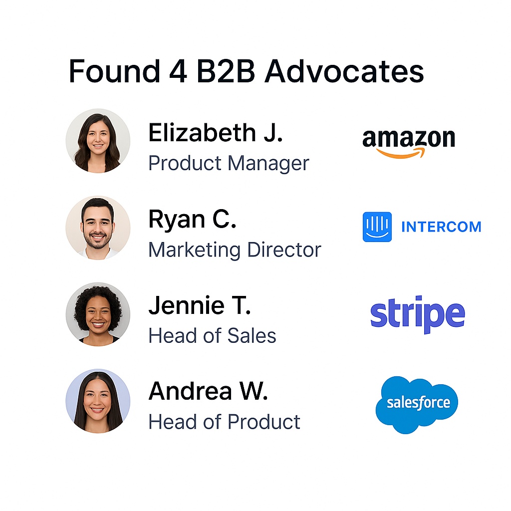 AI scans calls for enthusiasm, ROI claims, and success moments, then ranks contacts and accounts by advocacy potential.