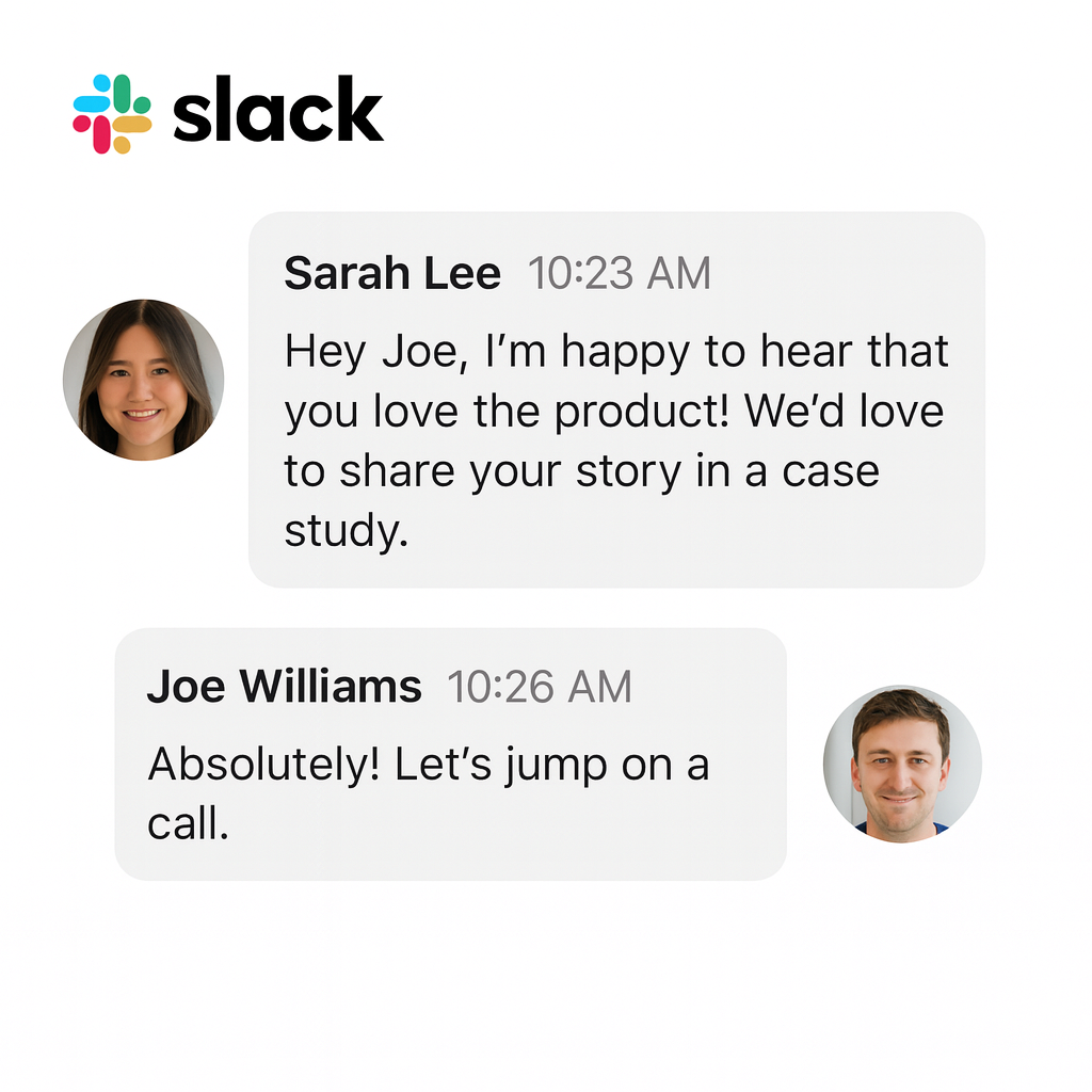 Turn time-stamped quotes into case studies, battlecards, and reviews, built from real customer language.